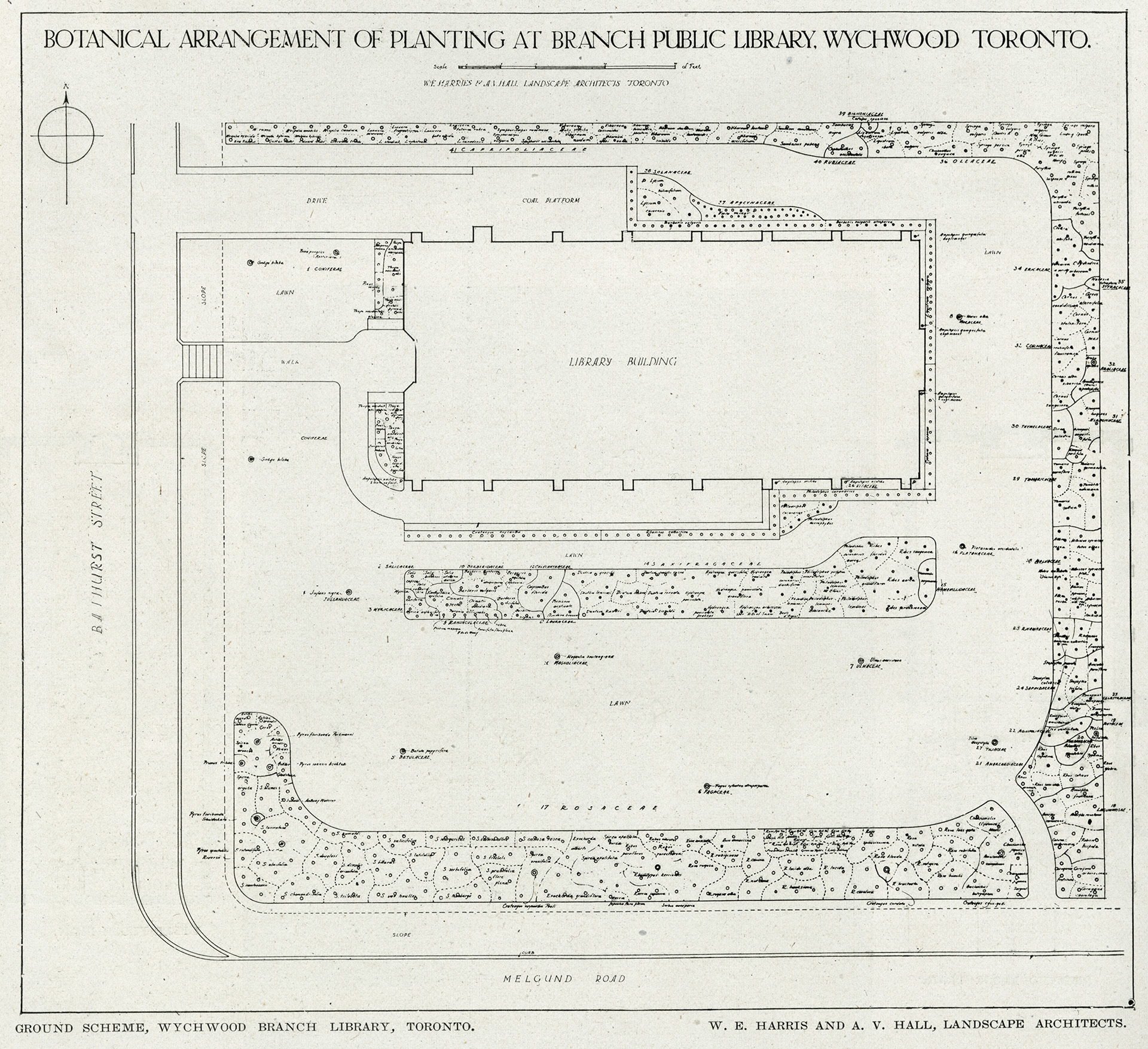 Landscaping the three new Carnegie libraries was underway by early November 1916, when Locke informed the Library Board's Libraries and Finance Committee: "Arrangements have been made for the planting of shrubs, perennials, and trees at Wychwood, High Park and Beaches. These must be planted in the fall to produce desired results."12