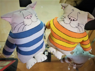Beloved illustrator Edward Gorey, known for his quirky Gothic sensibility, was extremely fond of cats. He designed these two beanbag toys himself in the 1970s. Although these are mass-produced, Gorey sometimes made stuffed animals by hand as gifts for friends. In addition to toys, we have several of Gorey's cat-themed books on display.