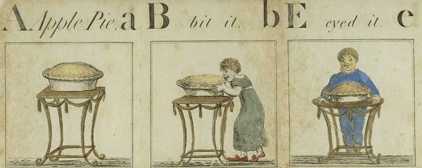 In the 19th century, the popularity of illustrated alphabet books expanded rapidly. Printing technology advanced making illustrated books easier and cheaper to produce. The market for children’s books also grew. Middle-class parents were eager to supply their children with books. The History of the Apple Pie (see digitized book or record for print copy) was an early example of this new demand for alphabet books.
