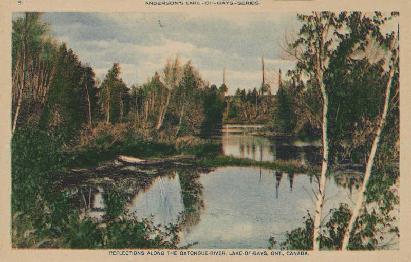 Prior to the First World War, Anderson took many photographs in and around Lake Muskoka, Lake Joseph and Lake Rosseau. He used them to make sepia-coloured and colourized picture postcards to sell to summer tourists.