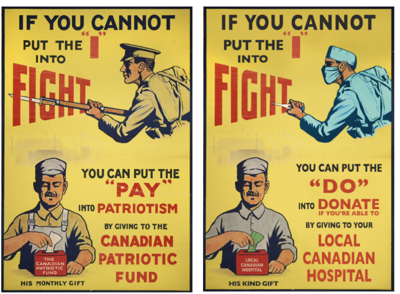 Original poster (left): Canadian Patriotic Fund, 1914