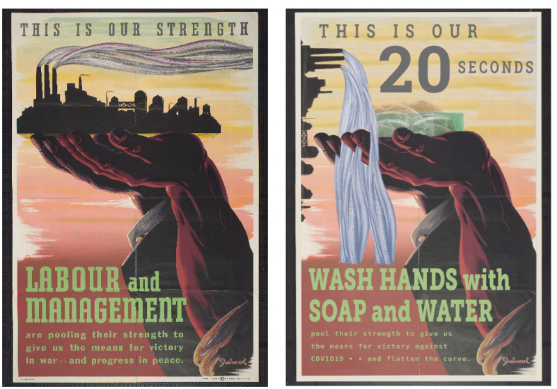 All the signs of support in our city during the pandemic have been truly inspiring. Also, they made me think of the many wartime posters held in our Baldwin Collection of Canadiana in Special Collections. Both today's signs and these vintage posters capture key moments in history.