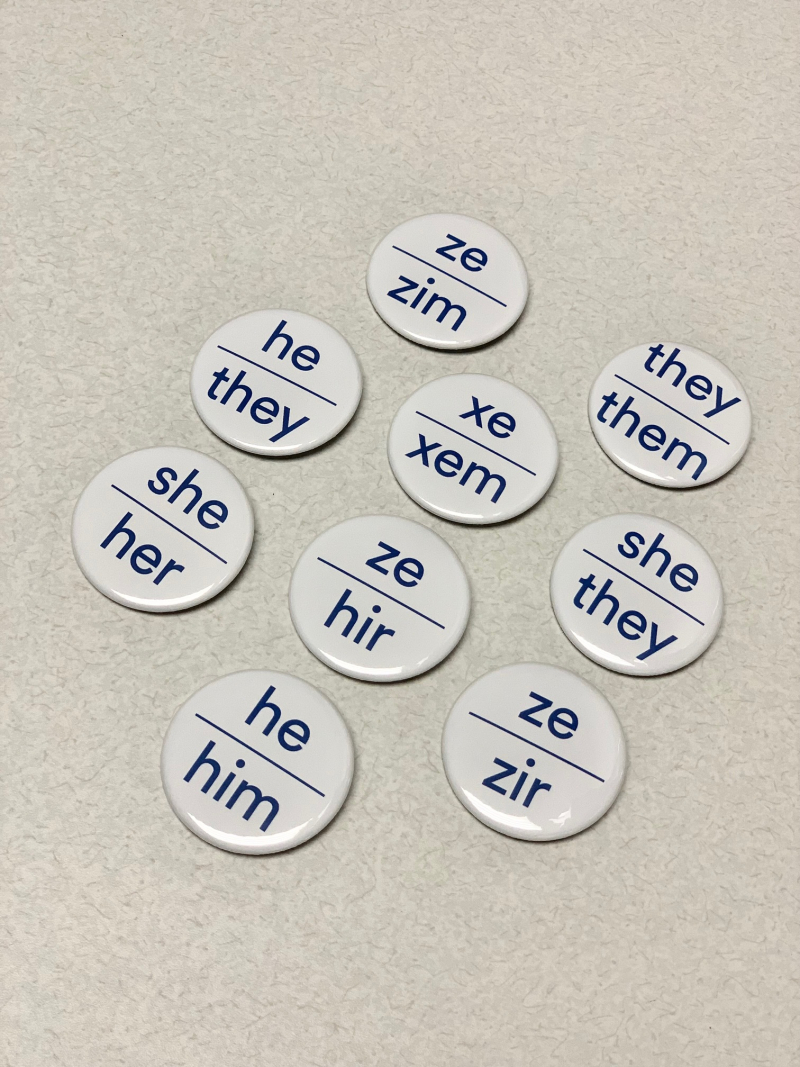 - and distributing optional pronoun pins for staff to wear on their lanyards.