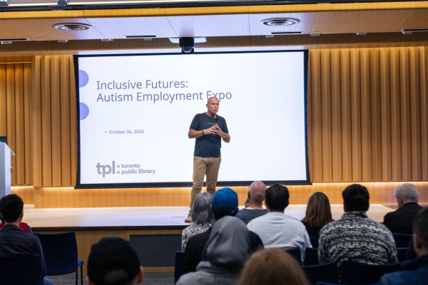 On October 26, over 200 guests attended TPL’s first Autism Employment Expo at North York Central Library’s Concourse Event Space. Autistic job seekers had the opportunity to hear inspiring talks, participate in skills-building workshops, meet employers and service providers, and connect with TPL resources. The event was featured on Toronto.com and CBC Metro Morning, helping attract visitors from as far as Parry Sound, Ontario and Buffalo, New York.