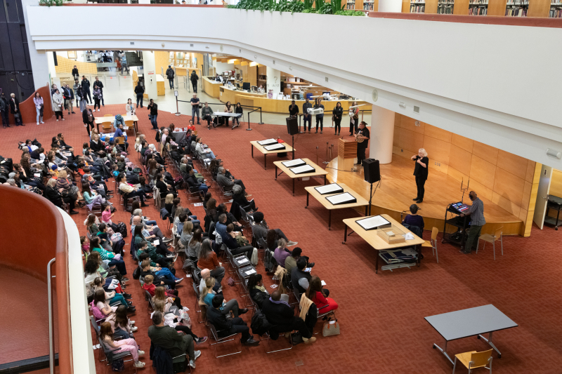 In response to widespread interest in Taylor Swift's Eras tour coming to Toronto, TPL hosted “Dear Reader: Taylor Swift (TPL’s Version),” an event in celebration of the pop star and her fans. The event took place on November 13 in the Toronto Reference Library’s Appel Salon, where 250 people came together for an evening of hands-on activities, conversation and community-building.