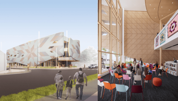 “This well-resolved neighbourhood library building explicitly wears its commitment to reconciliation on its sleeve with its Indigenous-inspired façade and rooftop programming area for First Nations. We reviewed a large number of projects attempting to acknowledge First Nations, and this one seemed to do so in a particularly comfortable way.”