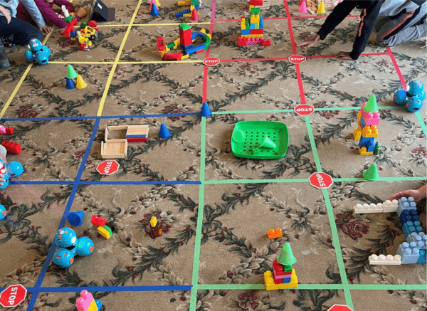On January 19, Barbara Frum branch held a robotics program for children ages six to 12. Children worked in teams to build a city using Lego, KEVA planks and Megablocks. Guided by roads made with tape, participants used a sequence of block coding to lead their Dash robots from one destination to another. The children tested their sequence and watched to see if their Dash robot followed the route envisioned. The program was a huge success with all children fully engaged, including those who were block coding for their first time.