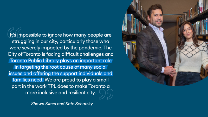 In December 2021, Shawn and Kate’s extraordinary unrestricted gift was made with no conditions and empowered Toronto Public Library to invest the funds into areas where they were most needed. The TPL Foundation is proud to share that several new initiatives have already launched as a direct result of the $1.25 million donation: