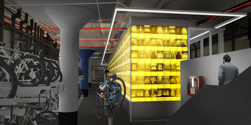 The recently opened Bicycle Station Facility under Nathan Phillips Square was a collaborative project between TPL’s Special Collections, Preservation & Digitization and UOAI Architects’ principal architect Vis Sankrithi. Sankrithi integrated archival content from the 1958 new City Hall International Design Competition into the new bike station design. Using digitized images and text provided by the Marilyn and Charles Baillie Special Collections Centre (Toronto Reference Library) and the Panda Collection (Canadian Architectural Archives, University of Calgary), the original transcribed lists of names of each of the 513 new City Hall competitors is etched on the central vestibule glass wall.