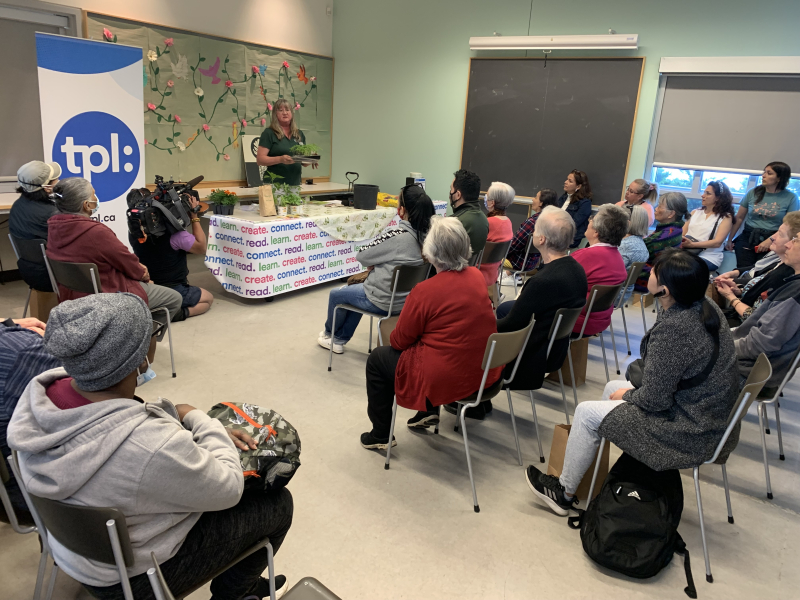 A presenter from Toronto Master Gardeners led the Urban Vegetable Gardening program, as part of the Our Fragile Planet program series, supported by TD Friends of the Environment. Seeds and plants were provided to almost 50 attendees, with many more visiting their booth throughout the day.