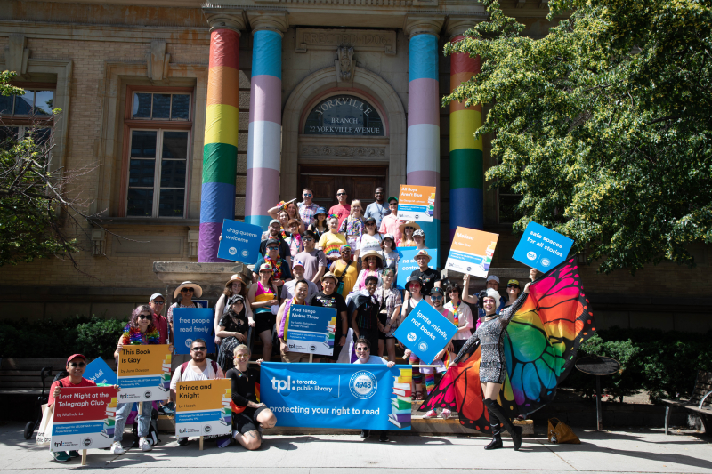 On Sunday, June 25, Pride Alliance, along with more than 50 staff, family and friends, plus drag performer Gila Munster, marched in the Toronto Pride Parade for the first time since 2019. Marchers held signs featuring titles of frequently banned and challenged 2SLGBTQ+ works to highlight how TPL and public libraries champion intellectual freedom.