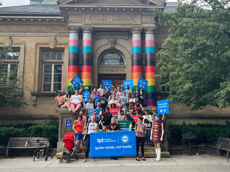 On Sunday, June 30, Pride Alliance, along with more than 50 staff, family and friends, plus drag performer Dank Sinatra, marched in the Toronto Pride Parade. Marchers held signs featuring titles of frequently banned and challenged 2SLGBTQ+ works to highlight how TPL and public libraries champion intellectual freedom.
