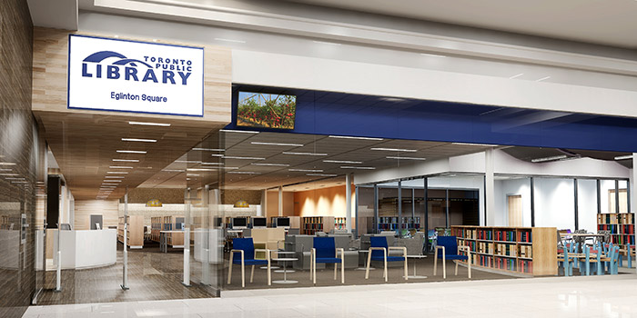 Toronto Public Library (TPL) is thrilled to announce the renovated and expanded Eglinton Square Branch (south side of Eglinton Ave at Victoria Park) is re-opening to the community on Friday, June 23, 2017 at 10 am. The branch is in the south east part of Eglinton Square Mall in the food court area.
