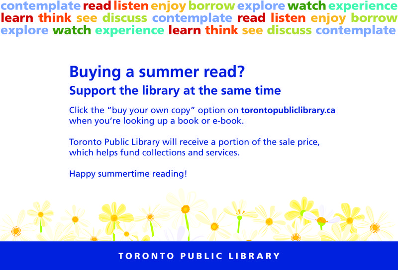 option to buy e-books via torontopubliclibrary.ca by clicking “buy your own copy” on titles that are available