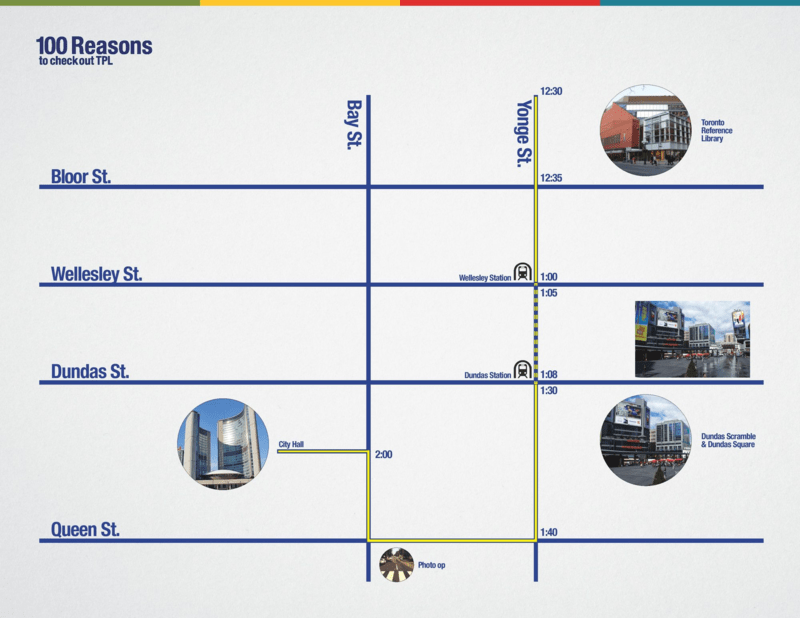 ‘The TPL100’ will mingle with the public, share their reason, hand out bookmarks and encourage people to register for and use their own library card, gathering in Nathan Phillips Square at the library’s City Hall branch between 1:30 and 1:45pm.