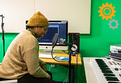Reserve recording spaces with access to studio mics, cameras, green screen and other audio, video and photography equipment.